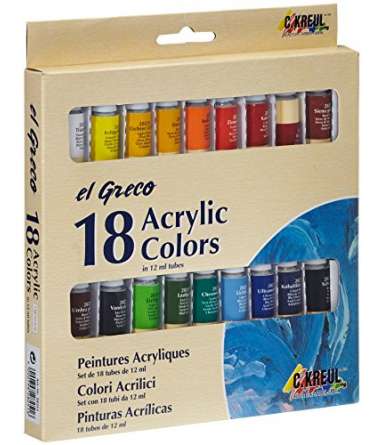12 ml (Titanium White, Genuine Yellow Citron, Indian Yellow, Vermilion, Carmine Red, Madder Lake, Pale Blue, Ultramarine Blue, Dark Cobalt Blue, Pale Green, Viridian Green, Foliage Green, Light Yellow Ocher, Raw Sienna, Burnt Sienna, Burnt Umber, Vandyke Brown, Black)