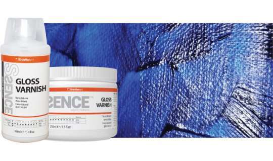 A SSENCE Gloss Varnish fényes felületet biztosít, és nem eltávolítható lakkként használható a felület védelmére és az egyenletes fényes fény megőrzésére. Hajlamos gyorsan száradni, és ha a SSENCE fényes lakkot az akrilfestmény tetejére viszi, akkor teljesen átlátszó lesz, bár homályosnak tűnhet, mielőtt teljesen megszáradna.
