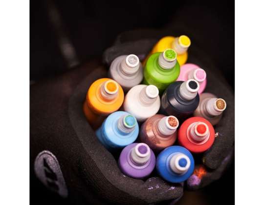 A dripstick tökéletes eszköz a nagy felületekre szinte bármilyen sima felületre. Csavaros fenekének köszönhetően könnyen tölthető – ami a Molotow™ R.E.M.™ (refill-exchange-mix) technológián belül nemcsak a környezet védelmét szolgálja, hanem további lehetőségeket is kínál az egyes árnyalatok keverésére.