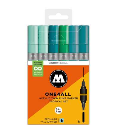 A Molotow ONE4ALL 2024-től 74 színben kapható, újratölthető. Nagy fedőképességgel rendelkezik, tartós és szinte minden felületen UV-álló. Akár szörfdeszkára, vászonra, hűtőre, graffitire vagy tornacipőre festesz: semmi sem lehetetlen. A hatékony színek (fluoreszkáló és fémes) sokkal vonzóbbá teszik a színezést. Nem hiányozhatnak egyetlen művész felszereléséből sem!